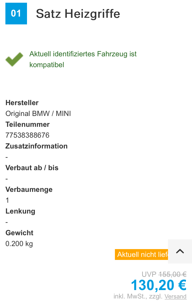 Re: Heizgriffe 130,20 o. Einbau